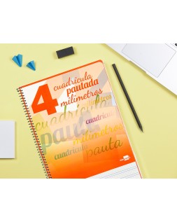 Cuaderno espiral liderpapel folio pautaguia tapa dura 80h 75gr cuadro pautado 4mm con margen colores surtidos