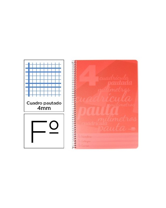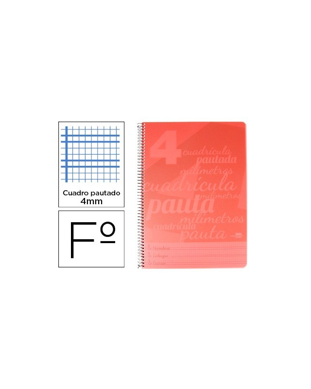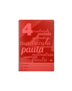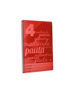 Cuaderno espiral liderpapel folio pautaguia tapa plastico 80h 75gr cuadro pautado 4mm con margen color rojo