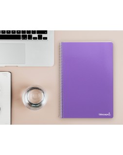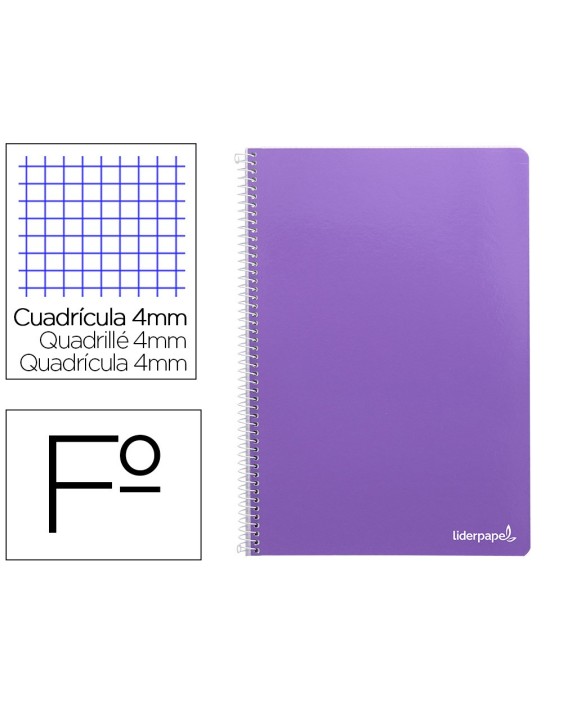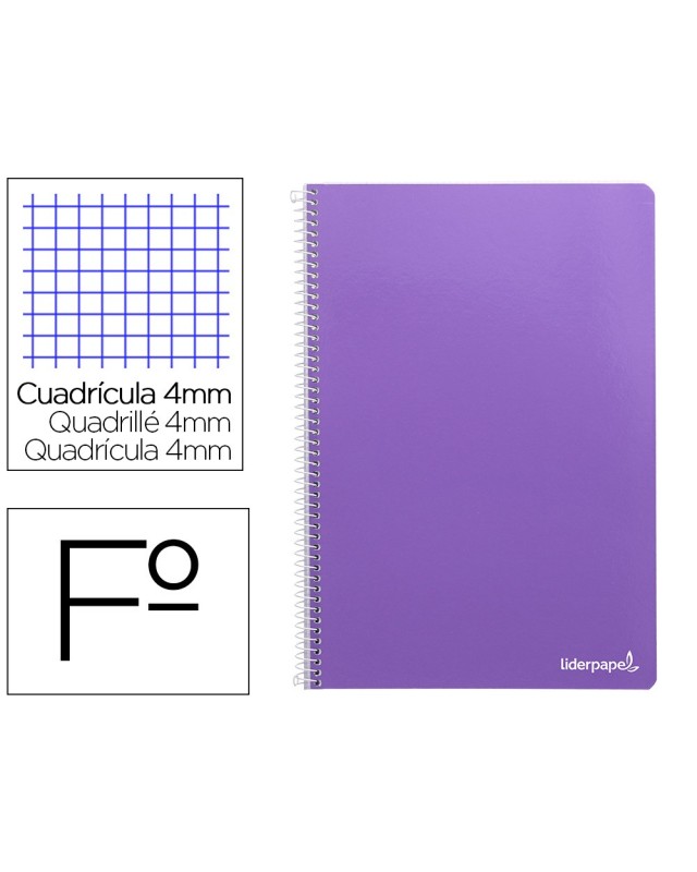 Cuaderno espiral liderpapel folio smart tapa blanda 80h 60gr cuadro 4mm con margen color violeta