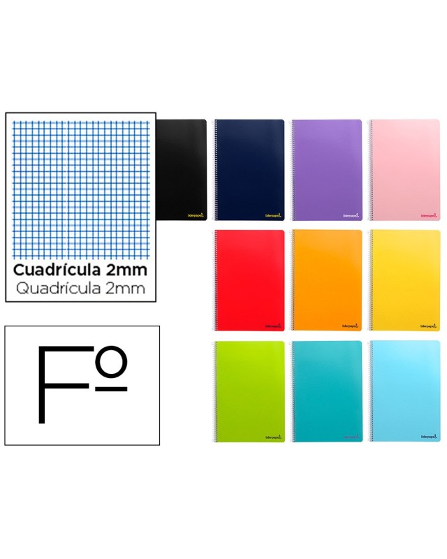 Cuaderno espiral liderpapel folio smart tapa blanda 80h 60gr milimetrado 2mm colores surtidos