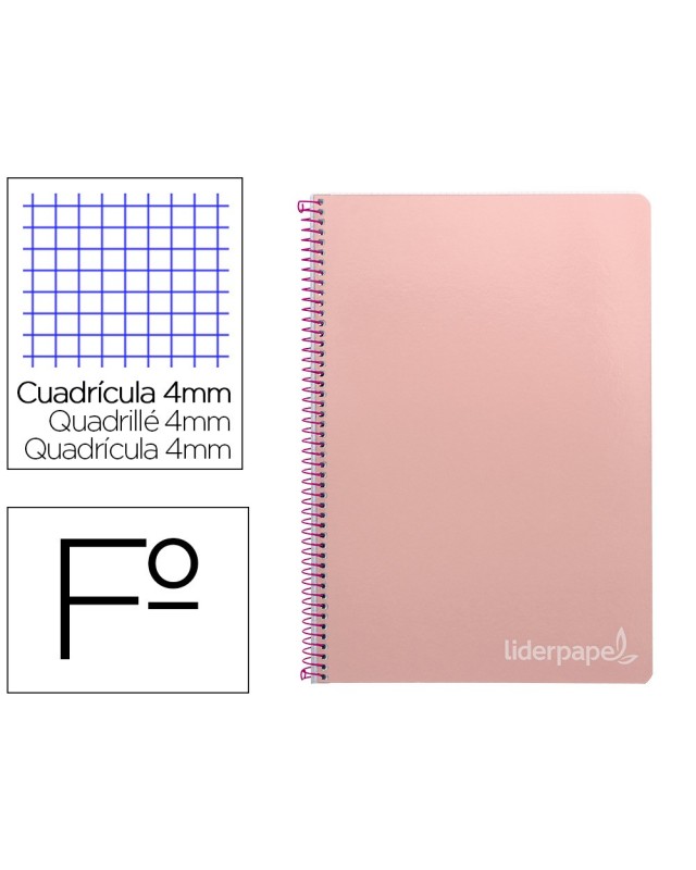 Cuaderno espiral liderpapel folio witty tapa dura 80h 75gr cuadro 4mm con margen color rosa