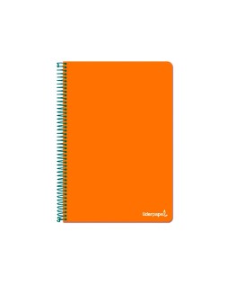 Tapa de cartoncillo impresa y plastificada en polietileno brillo con relieve. Contratapa de cartoncillo. Papel de 60 g/m². Espiral nylonizada negra. Con margen. Coil-lock. En 7 colores diferentes: amarillo, azul, naranja, rojo, rosa, turquesa o verde. Formato folio.