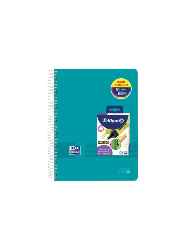 Cuaderno espiral oxford europeanbook 8 tapa polipropileno live&go din a4+ 120h cuadro 5 mm + pack 4 rot