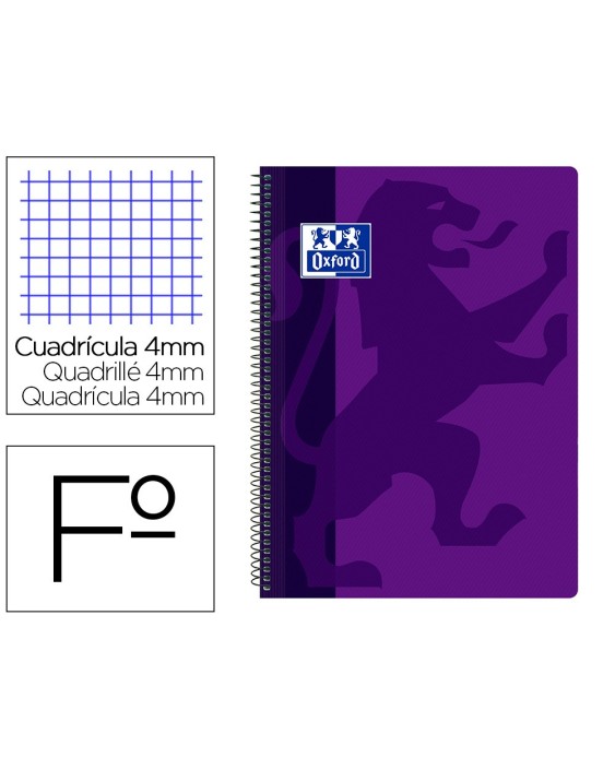 Cuaderno espiral oxford school classic tapa polipropileno folio 80 hojas cuadro 4 mm con margen