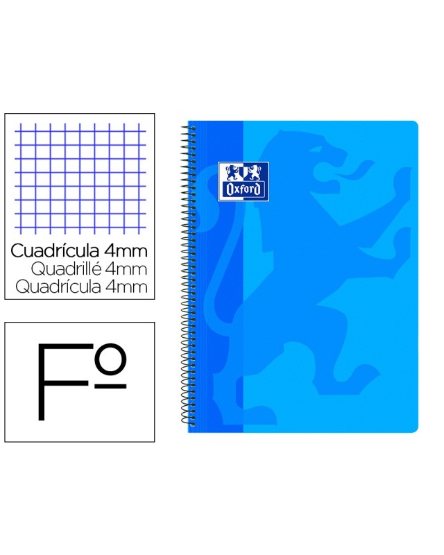 Cuaderno espiral oxford school classic tapa polipropileno folio 80 hojas cuadro 4 mm con margen azul