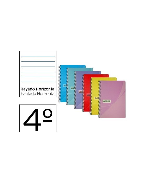 Cuaderno espiral papercop cuarto tapa plastico 80h 90 gr rayado horizontal con margen colores surtidos