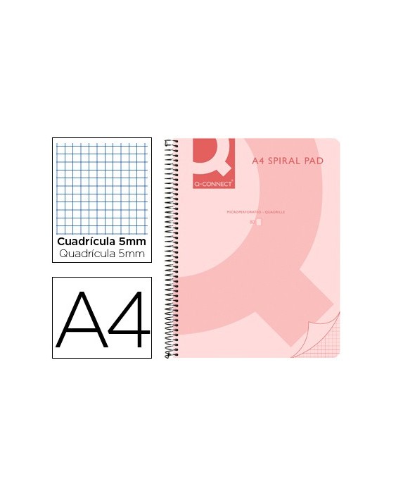 Cuaderno espiral q connect a4 micro tapa plastico 80h 70g cuadro 5mm sin bandas 4 taladros rosa
