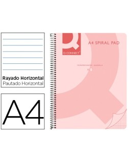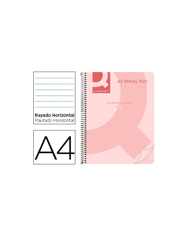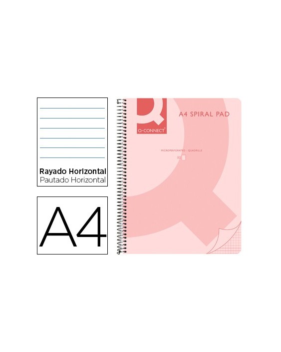 Cuaderno espiral q connect a4 micro tapa plastico 80h 70g horizontal sin bandas 4 taladros rosa
