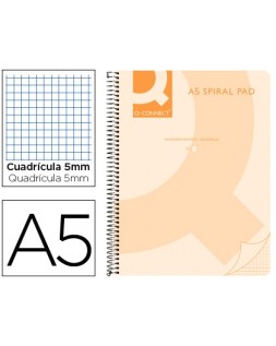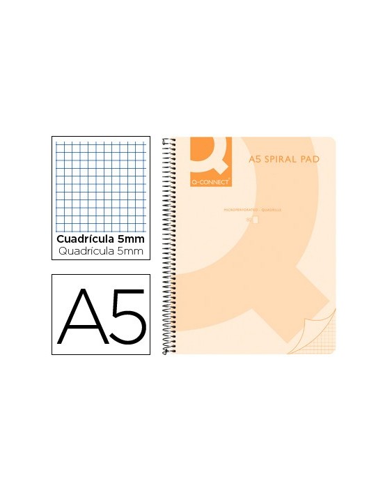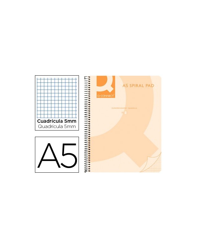 Cuaderno espiral q connect a5 micro tapa plastico 80h 70g cuadro 5mm sin bandas 6 taladros naranja