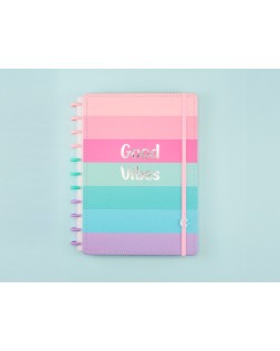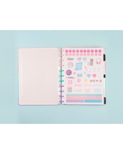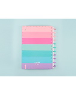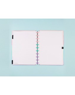 Cuaderno Inteligente By Indy. El original. Contenido: portada y contraportada rígidas, 1 funda de plástico transparente, 1 hoja de instrucciones de uso con productos de la marca, 1 hoja de datos personales con un calendario, 4 separadores (básicos: 2 negros y 2 transparentes), 80 hojas offset de 90 g (60 rayadas y 20 blancas lisas para imprimir), 1 soporte elástico para bolígrafo o lápiz, discos M y elástico. Medidas: 280 x 215 mm.