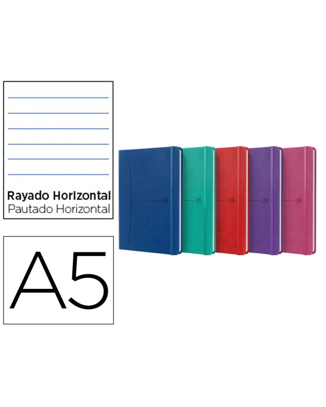 Cuaderno oxford cosida tapa extradura din a5 80 hojas rayado horizontal colores vivos surtidos