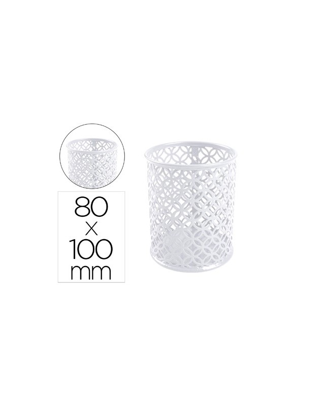 Cubilete portalapices q-connect blanco metal redondo diametro 80 mm alto 100 mm
