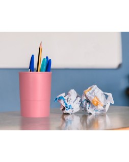 Cubilete portalapices q-connect rosa pastel opaco plastico diametro 75 mm alto 100 mm