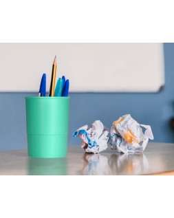 Cubilete portalapices q-connect verde menta pastel opaco plastico diametro 75 mm alto 100 mm