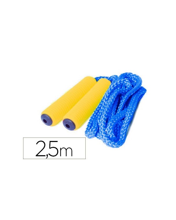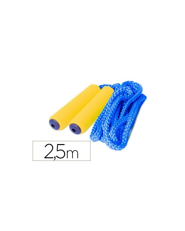 Características cuerda: Trenzado de polipropileno. Interior de poliestireno. Diámetro: 9 ml. Trenzado de 16 Usos. Peso 60 gramos. Colores: Rojo, azul, verde y amarillo.Características manguito: Fabricado de poliuretano. Color amarillo. Capa interior de polipropileno negro. Peso: 46 gr. Diámetro: 32 mm