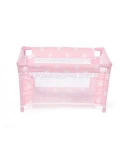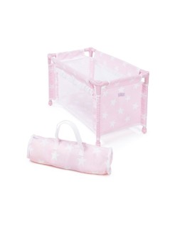 Práctica cuna de viaje de fácil montaje para que los peques se la lleven atodas partes. Incluye bolsa para guardarla y para su fácil transporte. El muñeco que puede ponerse en la cuna puede medir entre 30 y 52 cm. Puede l avarse a máquina. Se recomienda para niños a partir de 2 años.