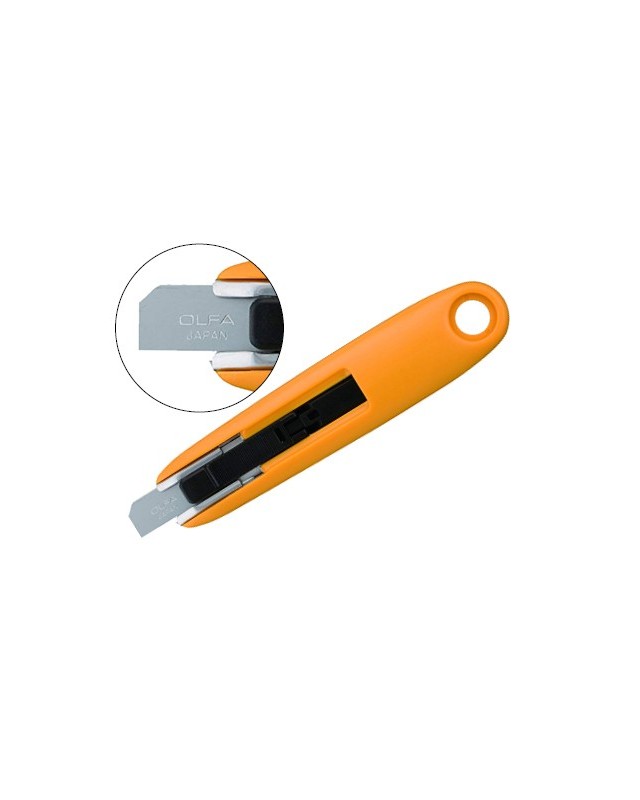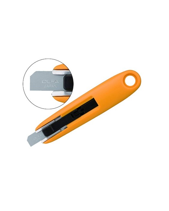 Cúter de oficina autorretráctil de 12,5 mm de ancho. La cuchilla se retrae al dejar de hacer contacto con la superficie que se está cortando. Sistema de bloqueo manual. Indicado para diestros o zurdos. Ideal para oficinas, almacenes, muelles de carga, etc. Cuerpo color amarillo. Incorpora 1 cuchilla. Longitud: 118 mm.