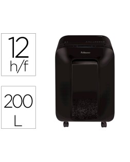 Capacidad de corte: 12 hojas. Corte en partículas de 4 x 12 mm. Nivel de seguridad P-4. Bloqueo de seguridad para evitar accidentes. Destruye de manera continua durante 6 minutos con un tiempo de enfriamiento de 10 minutos. Destruye grapas, clips y tarjetas de crédito. Papelera con capacidad para 22 litros. Medidas: 520 x 360 x 260 mm. Peso: 9,3 kg.