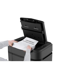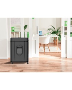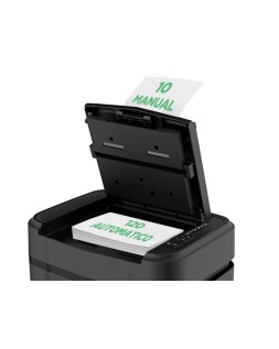 Destruye hasta 10 hojas en modo manual y hasta 120 hojas en modo automático. Ideal para uso intensivo. Corta el papel en partículas de 4 x 12 mm. Nivel de seguridad P-4. Ciclo de trabajo: 60 minutos automático y 20 minutos en modo manual. Destruye clips, pequeñas grapas y tarjetas de crédito. Sistema antiatascos. Tapa de seguridad. Protección contra el sobrecalentamiento. Con ruedas para un fácil desplazamiento. Papelera de 19 litros con ventana. Velocidad de destrucción: 1,8 metros por minuto. Ancho entrada papel: 220 mm. Medidas: 366 x 287 x 500 mm. Peso: 11 kg.