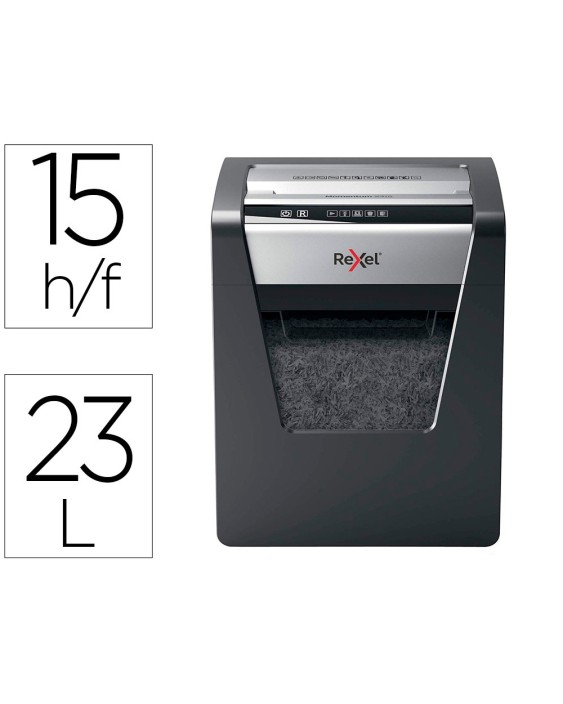 Destructora en confeti para destruir a diario con seguridad, adecuada para casas o pequeñas empresas. Destruye hasta 15 hojas de papel (80 g/m²) a la vez. Destruye papel, grapas y clips, funcionamiento silencioso. Destrucción con funcionamiento interrumpido de 2 horas, 60 min de enfriamiento. Papelera de 23 litros. Tecnología antiatasco. Medidas: 370 x 465 x 279 mm. Peso: 12,5 kg.