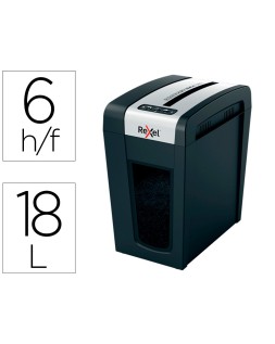 La gama de destructoras de papel Secure de Rexel es ideal para destruir sus documentos personales e información confidencial en casa. La máquina destructora Secure MC6-SL destruye hasta 6 hojas de papel A4 (80 grs) de una sola vez a través de la ranura de alimentación manual en partículas de nivel de seguridad P-5 (2x15 mm). Esta destructora de micro corte es perfecta para usar como destructora una oficina en casa o como destructora en una oficina personal gracias a su diseño compacto y estrecho. También es una destructora de oficina personal ideal que se coloca cómodamente debajo de un escritorio y funciona con Whisper-Shred de bajo ruido. Diseñada para un uso de esporádico a moderado con una capacidad de papelera de 18 litros.os.