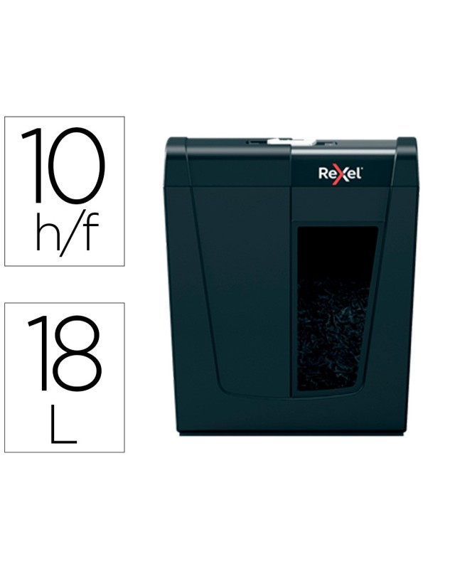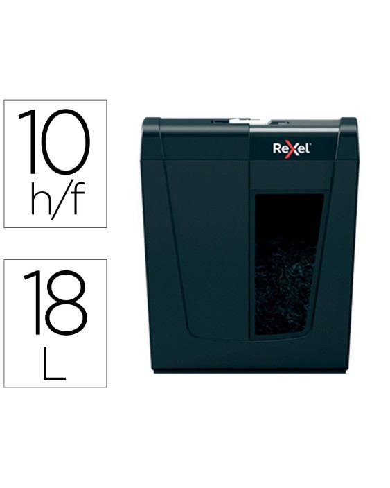La gama de destructoras de papel Secure de Rexel es ideal para destruir sus documentos personales e información confidencial en casa. La máquina destructora Secure X10 destruye hasta 10 hojas de papel A4 (80 grs) de una sola vez a través de la ranura de alimentación manual en partículas de nivel de seguridad P-4 (4x40 mm). Esta pequeña destructora de corte en partículas es perfecta para usar como destructora doméstica en una oficina en casa, o también es una destructora de oficina personal ideal que se adapta cómodamente debajo de un escritorio debido a su tamaño compacto y adecuado. Diseñada para un uso de esporádico a moderado con una capacidad de papelera de 14 litros.