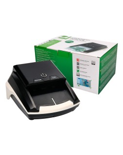Señalización bueno/malo automática. Alimentación y opción de salida del billete seleccionable: frontal o posterior. Con cuenta de número y de valor. Velocidad de prueba < 1 segundo. Puerto USB para actualizaciones de software. Incluye cable a red y toma de enchufe para Europa y UK. Certificado CE. Medidas: 155 x 82 x 137 mm. Peso: 0,7 kg.