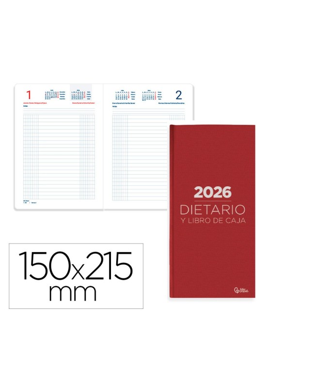Dietario liderpapel 2026 cuarto 150x215 mm dia pagina color rojo papel 70 gr fsc