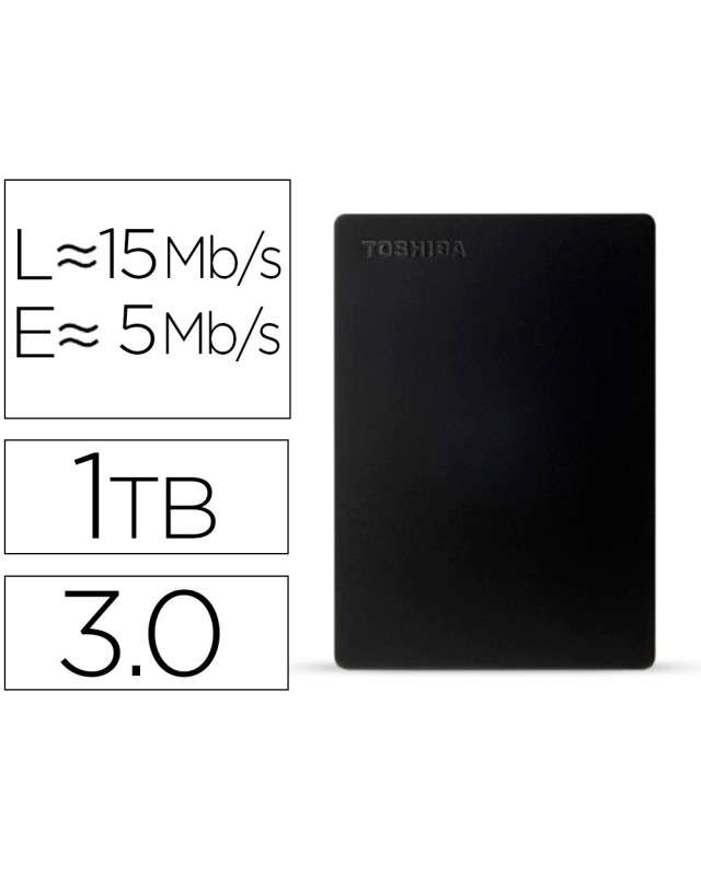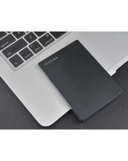 Almacena datos de forma segura en el disco duro portátil Canvio Slim. Su diseño elegante y ligero de aluminio, disponible en color negro, lo convierte en el compañero perfecto para tus dispositivos informáticos de alta gama. Transfiere tus archivos mediante SuperSpeed USB 3.2 Gen 1 y consérvalos a salvo con el software descargable Toshiba Storage Security. Además, el software descargable Toshiba Storage Backup permite realizar copias de seguridad automáticas regulares de hasta 2 TB de datos.