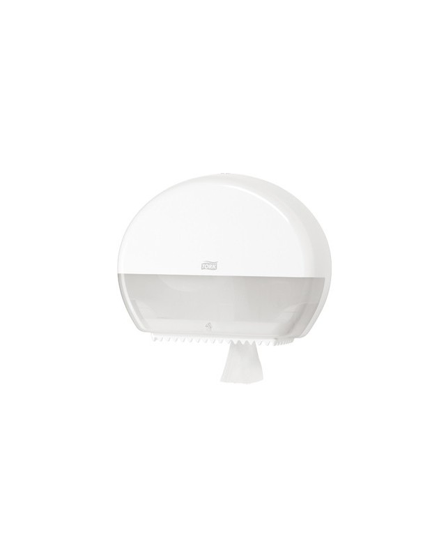Proporciona gran capacidad extra para papel higiénico jumbo. Compartimento para rollo de hasta 35 m. Visor semitransparente para ver cuándo es preciso efectuar la reposición. Freno óptimo de los rollos para una ágil dispensación sin riesgo de caída. Dientes reforzados con fibra de vidrio: corte limpio y sencillo del papel. Adecuado para sitios de gran afluencia. Color blanco y transparente. Medidas: 345 x 275 x 132 mm.