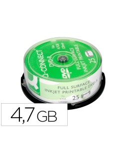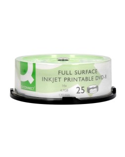 Dvd-r q-connect con superficie 100% imprimible para inkjet capacidad 4,7gb duracion 120mivelocidad 16x bote de 25 unid