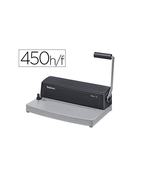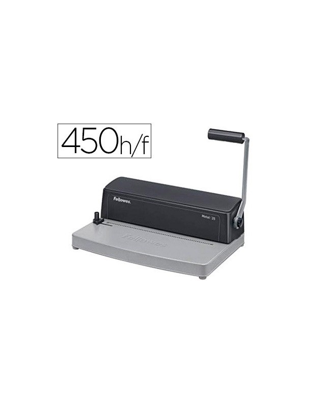 Perfora hasta 10 hojas DIN A4 de 80 g/m². Encuaderna hasta 450 hojas de 80 g/m² con una espiral de 50 mm. Paso de la espiral 5:1. Base metálica para mayor resistencia y estabilidad. Palanca de perforación metálica. Regulación del margen lateral. Bandeja para residuos de fácil extracción. Incluye alicates para cortar la espiral. Medidas: 380 x 140 x 250 mm. Peso: 3,5 kg.