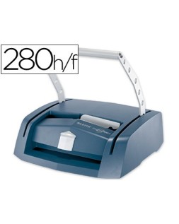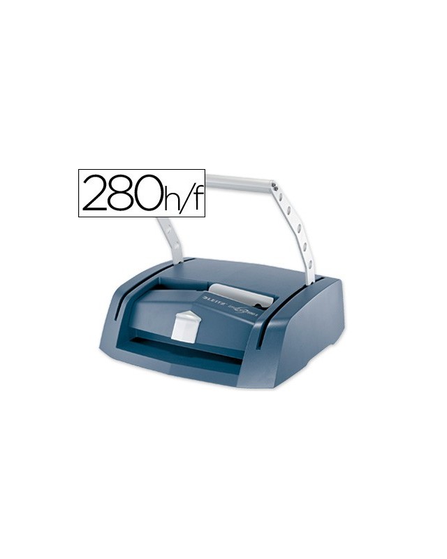 Nueva máquina de encuadernación por presión con el sistema Channel. Ofrece un acabado plenamente profesional. La máquina detecta qué tamaño de tapa está utilizando, por lo que no necesita ningún preajuste. Mide el grosor del documento y le dice qué tamaño de tapa debe usar. Puede ser guardada vertical u horizontalmente. Medidas: 460 x 510 x 160 mm. Peso: 23 kg.