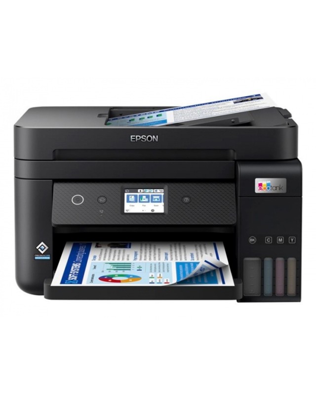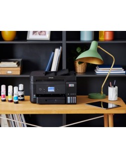 Impresora multifunción A4 con fax y ADF Impresión, copia, escaneo,& fax. Impresión a un coste extraordinariamente bajo. Ahorra hasta un 90 % en costes de impresión. Hasta 72 cartuchos en un solo juego de tintas. Imprime hasta 7.500 páginas en negro y 6,000 en color. Sistema de depósito de tinta sin problemas. Disfruta de recargas sin problemas con botellas con sistemade bloqueo y depósitos frontales. Aplicación Epson Smart Panel Configura, supervisa, imprime, escanea y mucho más, todo desde tu dispositivo inteli gente.
