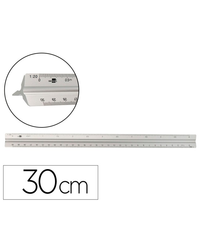 Escala liderpapel aluminio forma triangular con funda protectora longitud 30 cm 1:20 1:25/1:50/1:75/1:100/1:150