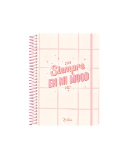 Agenda escolar liderpapel 26-27 espiral graphic dia pagina a5+ bilingue 80g papel fsc rosa