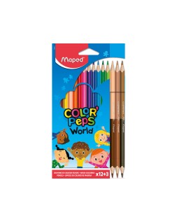 Lapices de colores maped color peps world caja de 12 colores surtidos + 3 duo tonos de piel