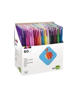 Papel seda liderpapel 52x76 cm expositor 60 bolsas de 5 hojas 12 colores surtidos