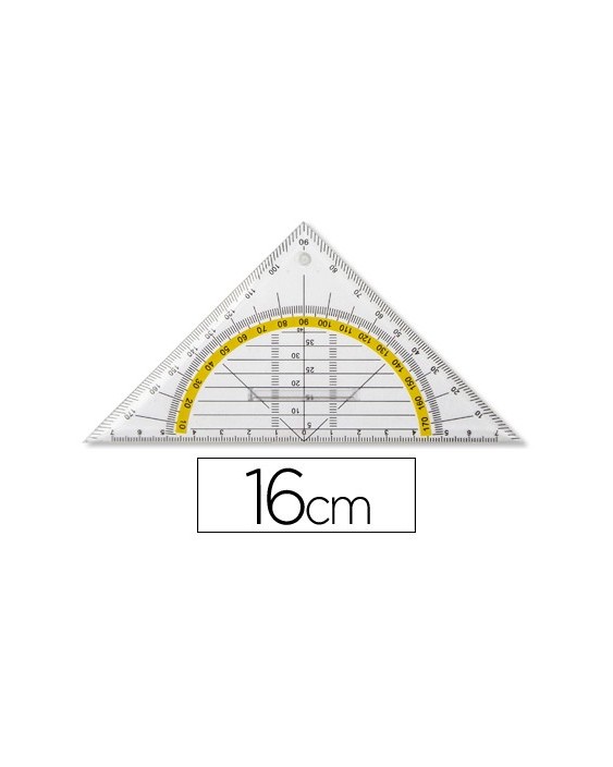 Escuadra liderpapel geometria 16 cm plastico cristal con pestaña de sujeccion