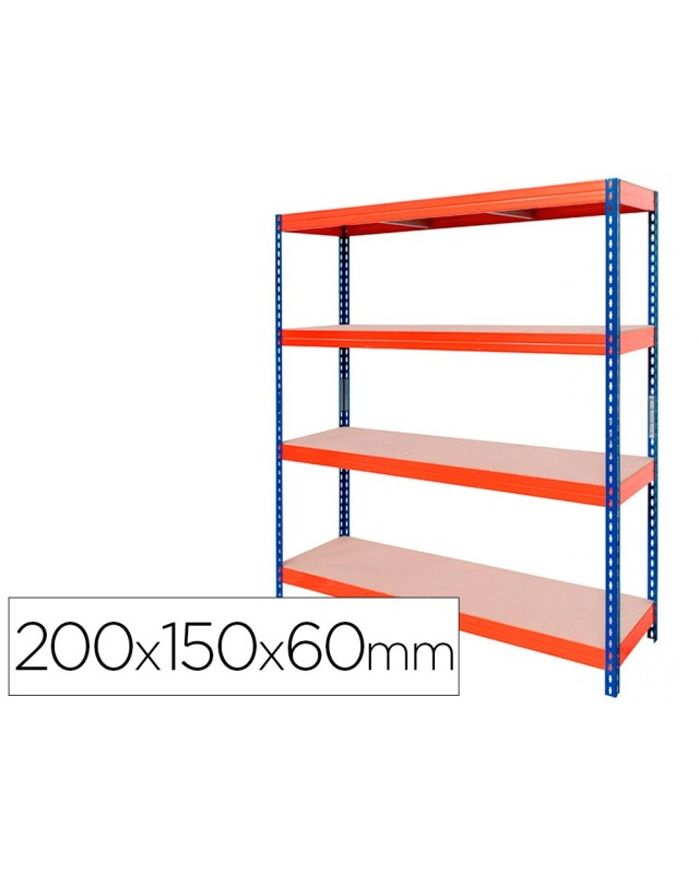 Estanteria metalica ar stabil xl 200x150x60 cm 4 estantes 500 kg por estante bandeja de madera sin tornillos color