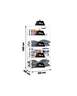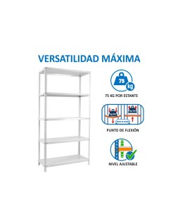 Estanteria metalica simonrack kits advantage mini 5/400 color blanco 5 estantes 75 kg por estante 180x80x40 cm