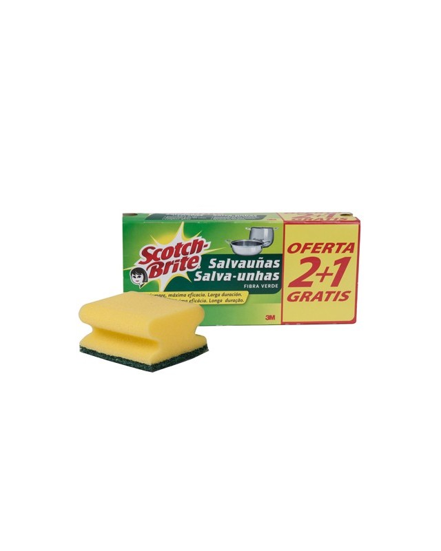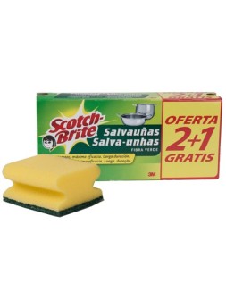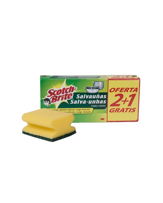 Estropajo salvauñas scotch brite fibra verde paquete 3x2