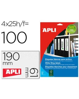 Etiqueta adhesiva apli 1233 tamaño 190x61 mm para fotocopiadora laser ink-jet caja 25 hojas con 100