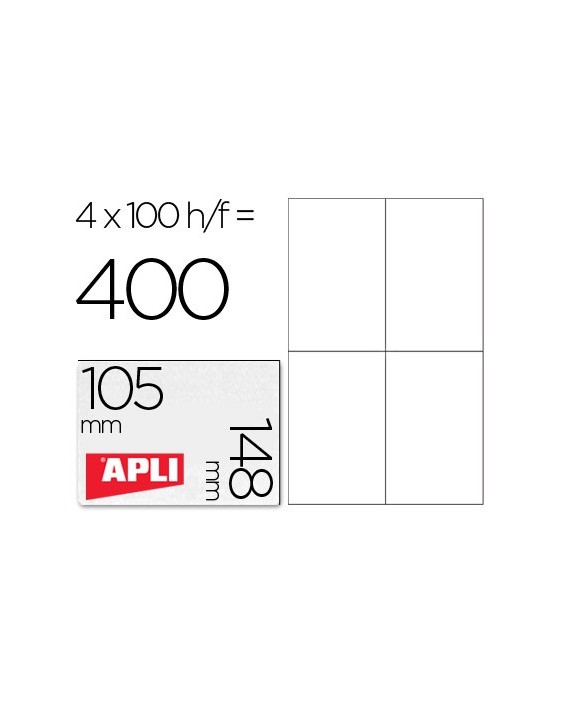 Etiqueta adhesiva apli 1280 tamaño 105x148 mm para fotocopiadora laser ink-jet caja con 100 hojas din a4
