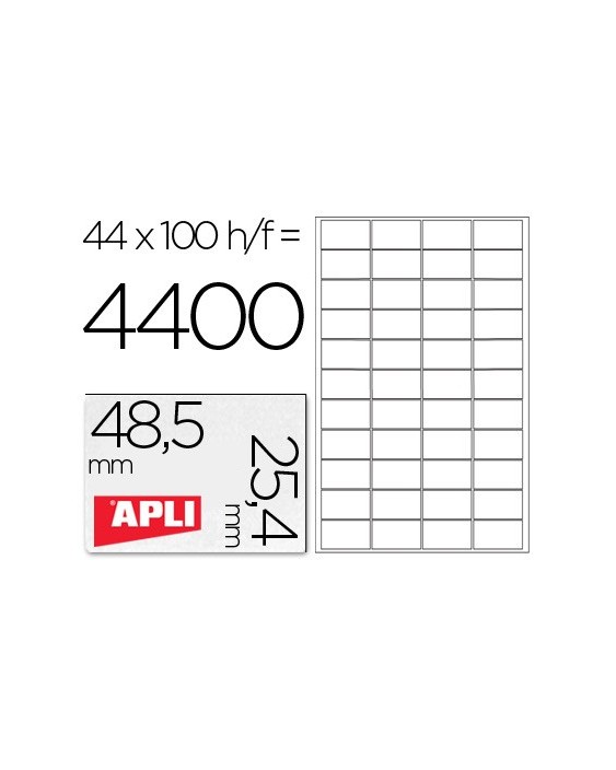 Etiqueta adhesiva apli 1285 tamaño 48,5x25,4 mm para fotocopiadora laser ink-jet caja con 100 hojas din a4