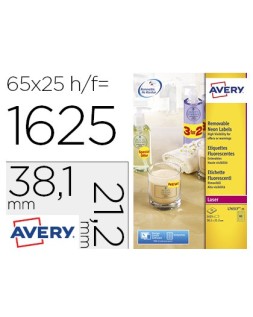 Etiqueta adhesiva avery tamaño 38,1x21,2 mm removible amarillo fluorescente caja de 1625 unidades