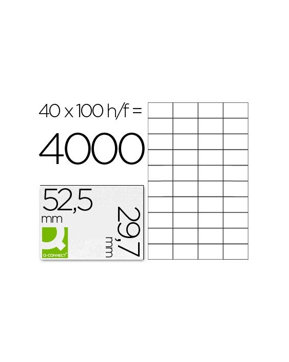 Etiqueta adhesiva q-connect kf00574 -tamaño 52,5x29,7 mm -fotocopiadora -laser -ink-jet-caja con 100 hojas din a4