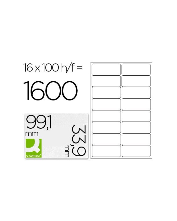 Etiqueta adhesiva q-connect kf01584 tamaño 99,1x33,9 mm fotocopiadora laser ink-jet caja con 100 hojas din a4