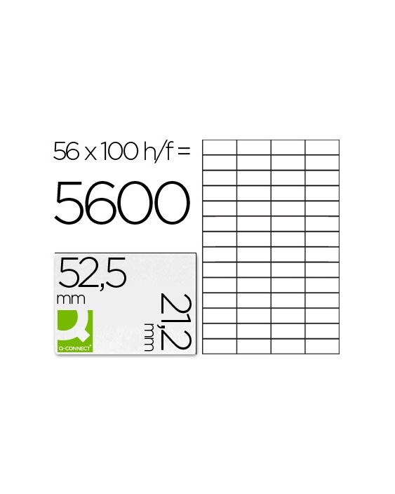 Etiqueta adhesiva q-connect kf10638 tamaño 52,5x21,2 mm fotocopiadora laser ink-jet caja con 100 hojas din a4