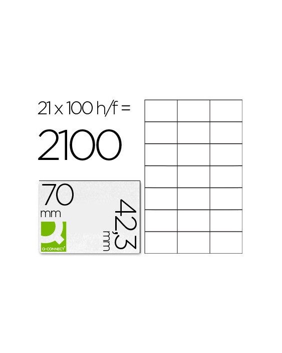 Etiqueta adhesiva q-connect kf10649 -tamaño 70x42,3 mm fotocopiadora laser ink-jet caja con 100 hojas din a4